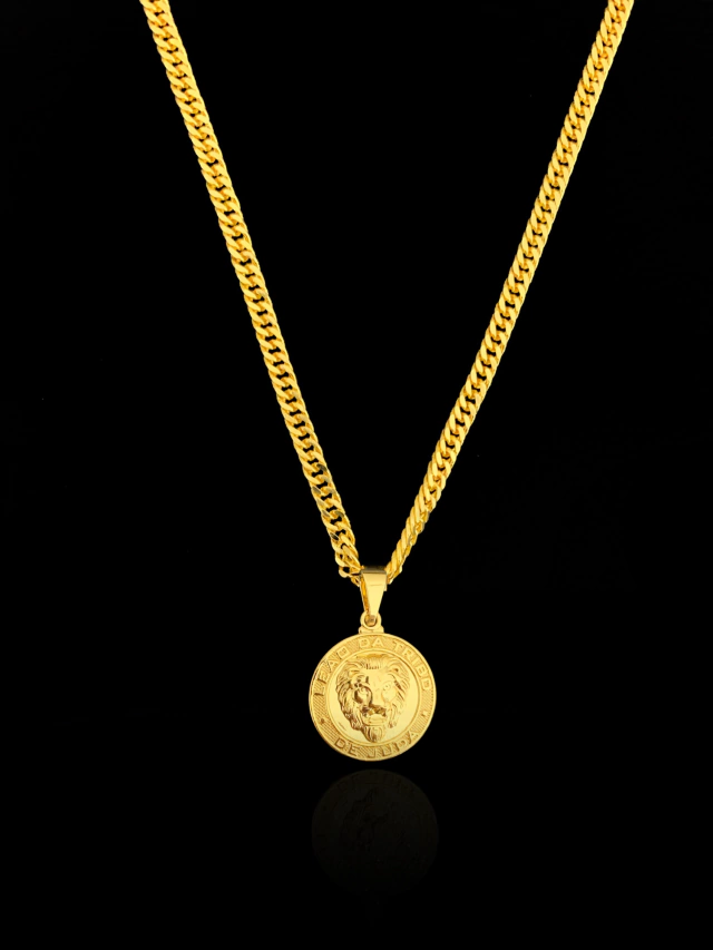 CORRENTE GRUMET DUPLA FECHO TRADICIONAL (3mm) + PINGENTE MEDALHA LEÃO DA TRIBO DE JUDÁ - 2x2cm - BANHADO A OURO 18k